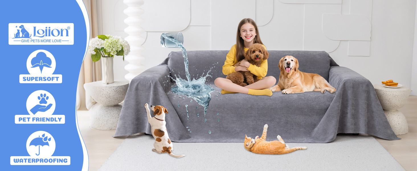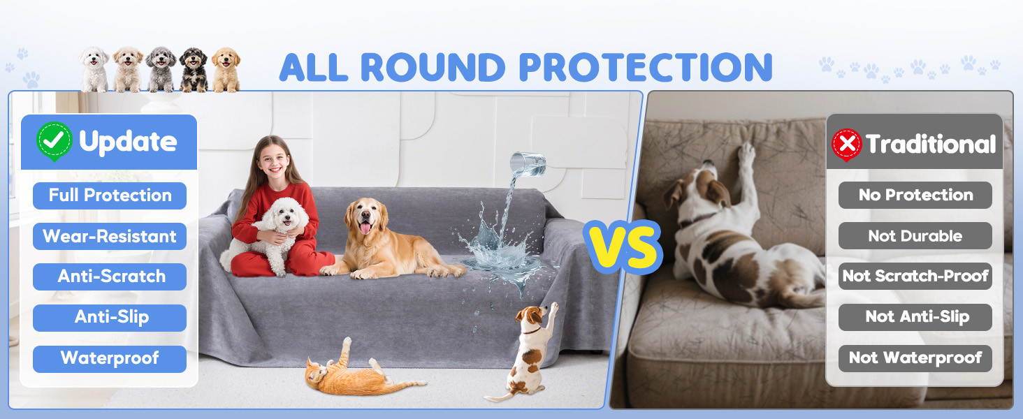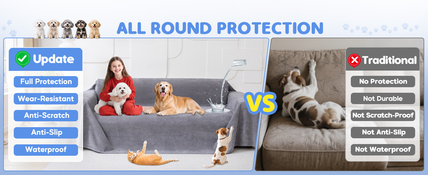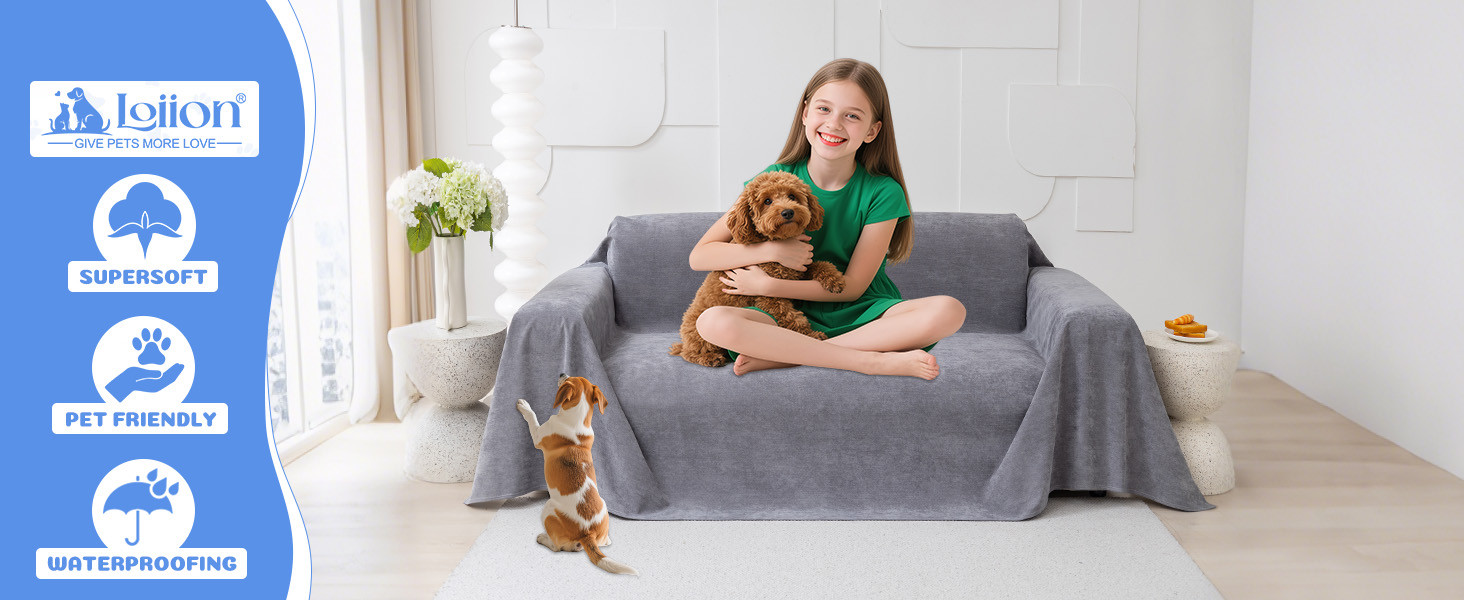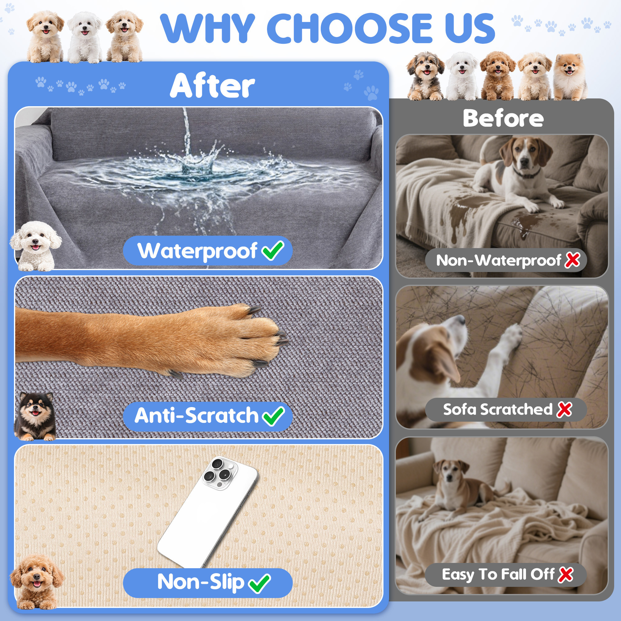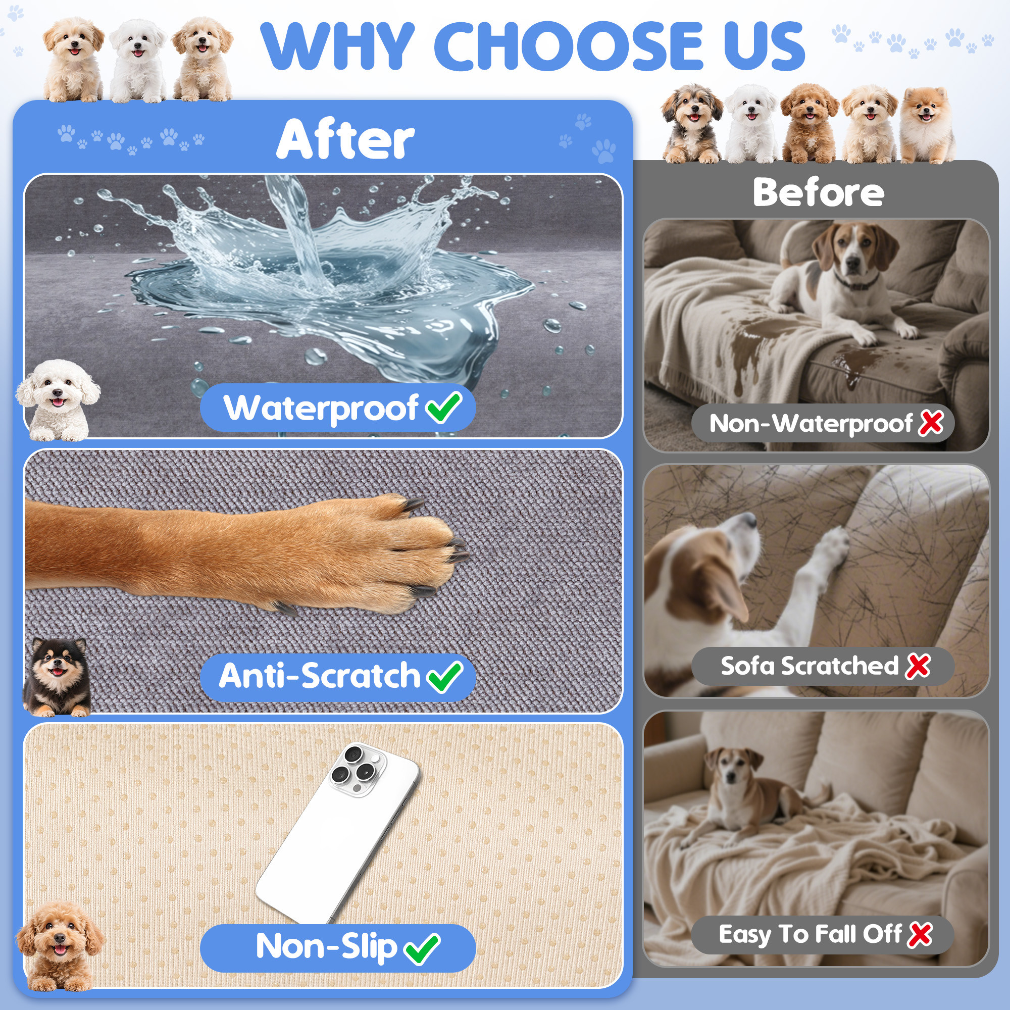 Ultra No-Slip Grip:The non slip sofa cover's silicone grippers on the back cling like Velcro—even when your 50lb Lab races across the couch or kids jump on it. No more constant readjusting like flimsy blankets. Finally, a protector that stays PUT.