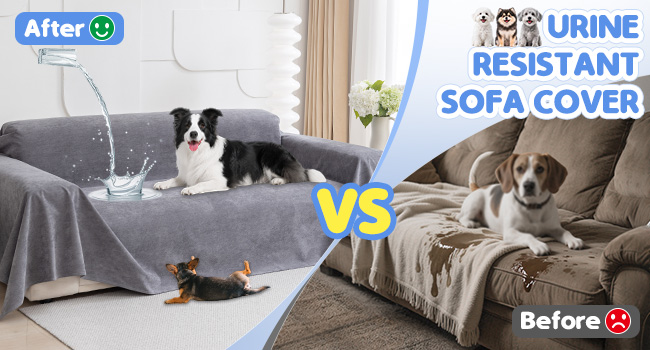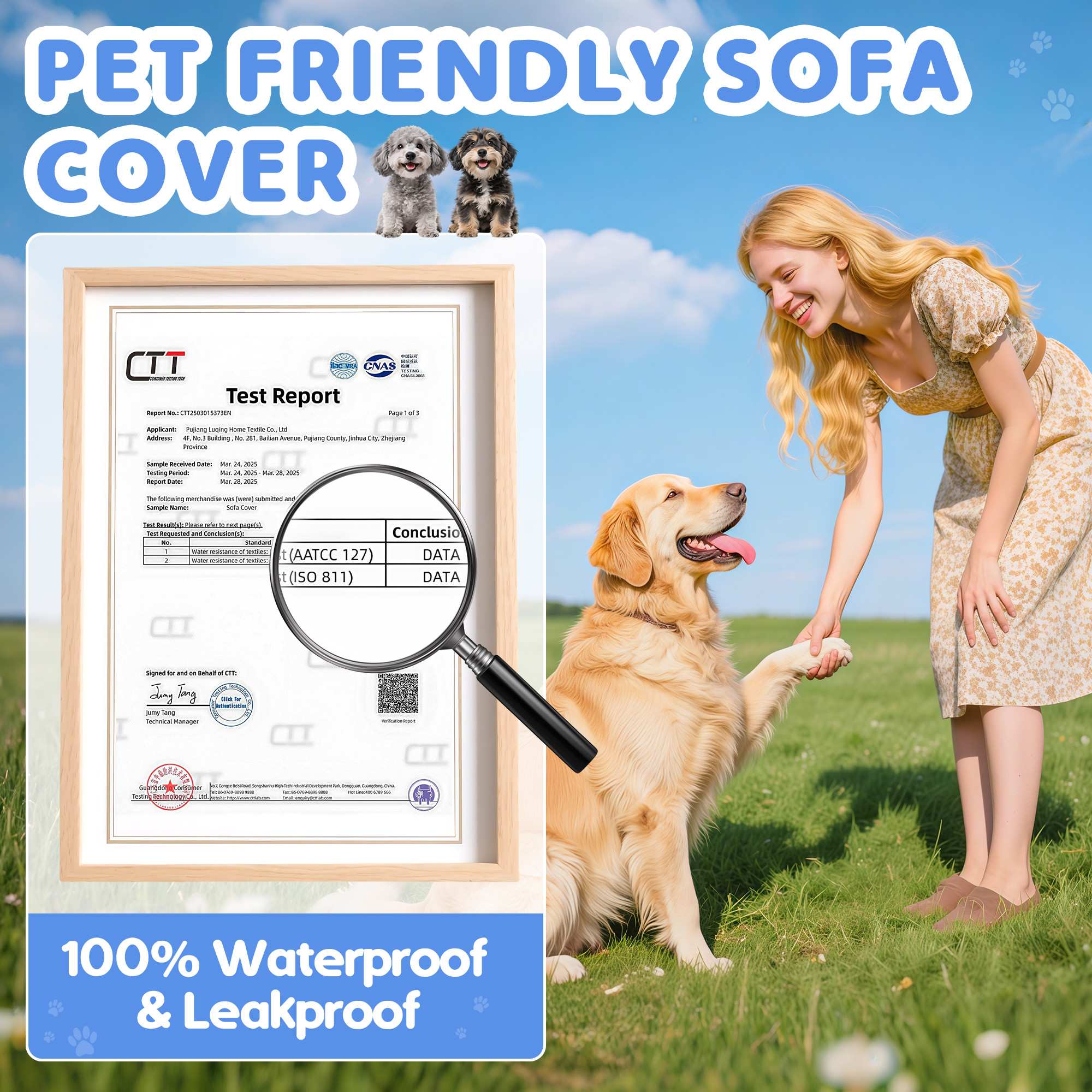 Dual-Sided Waterproof:Our waterproof couch cover was certified by ILAC -Water resistance of textiles: Hydrostatic Pressure test (AATCC 127), waterproof layers on BOTH SIDES lock in accidents, drool, and muddy paws—no more flipping the blanket when spills happen! Lab-tested to stop liquid from soaking through. Let your pup play wild while your couch stays pristine.