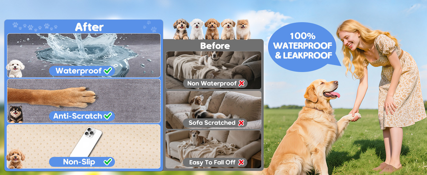 Waterproof and Easy to Maintain: Our couch cover for dogs washable shields your furniture from spills and accidents, ensuring easy clean-up. Simply toss it in the washing machine with cold water (around 30°C) and mild detergent for hassle-free maintenance. Avoid bleach and ironing. Our friendly customer service team is here to help with any questions post-purchase.