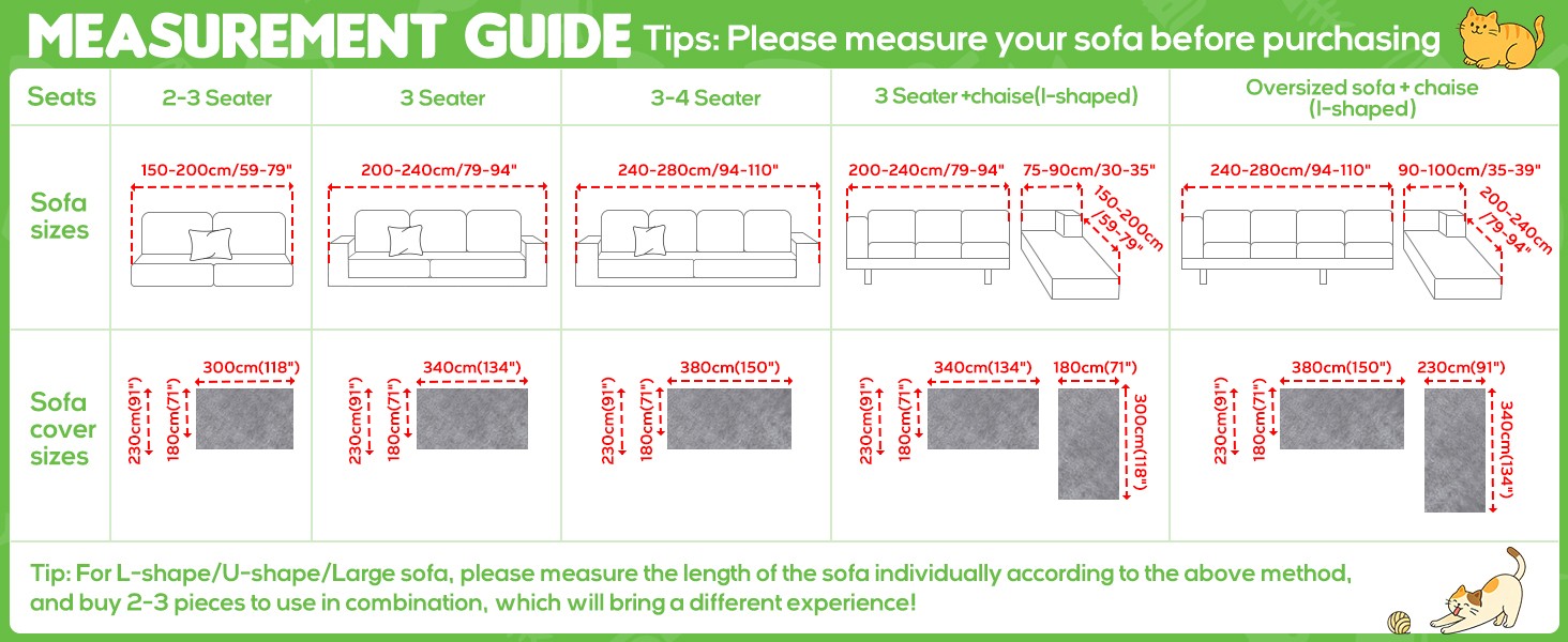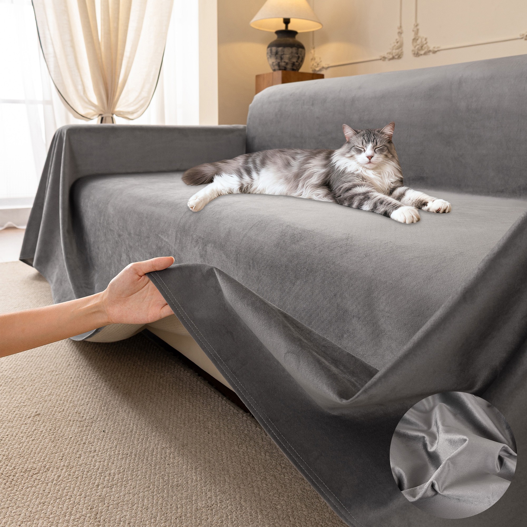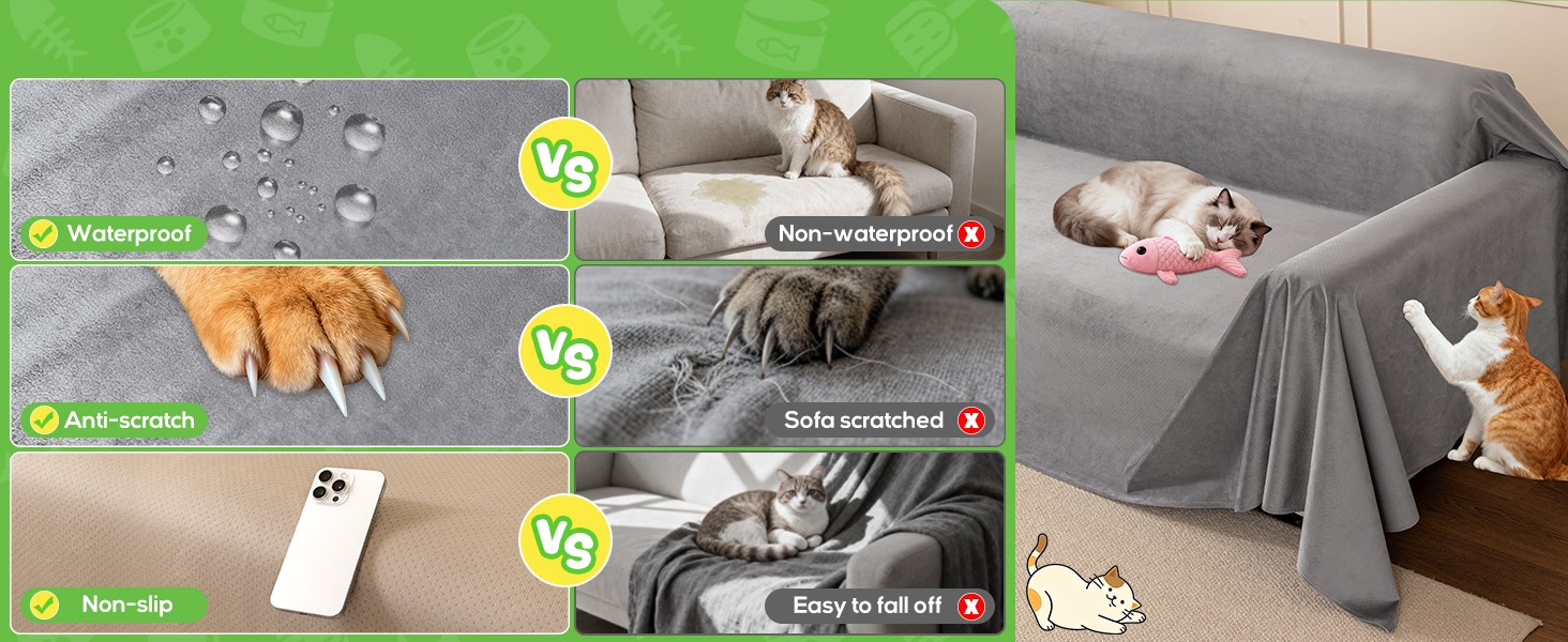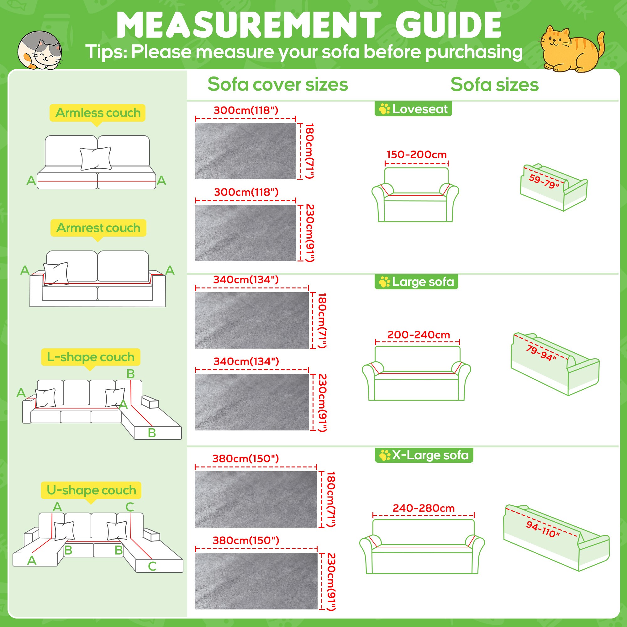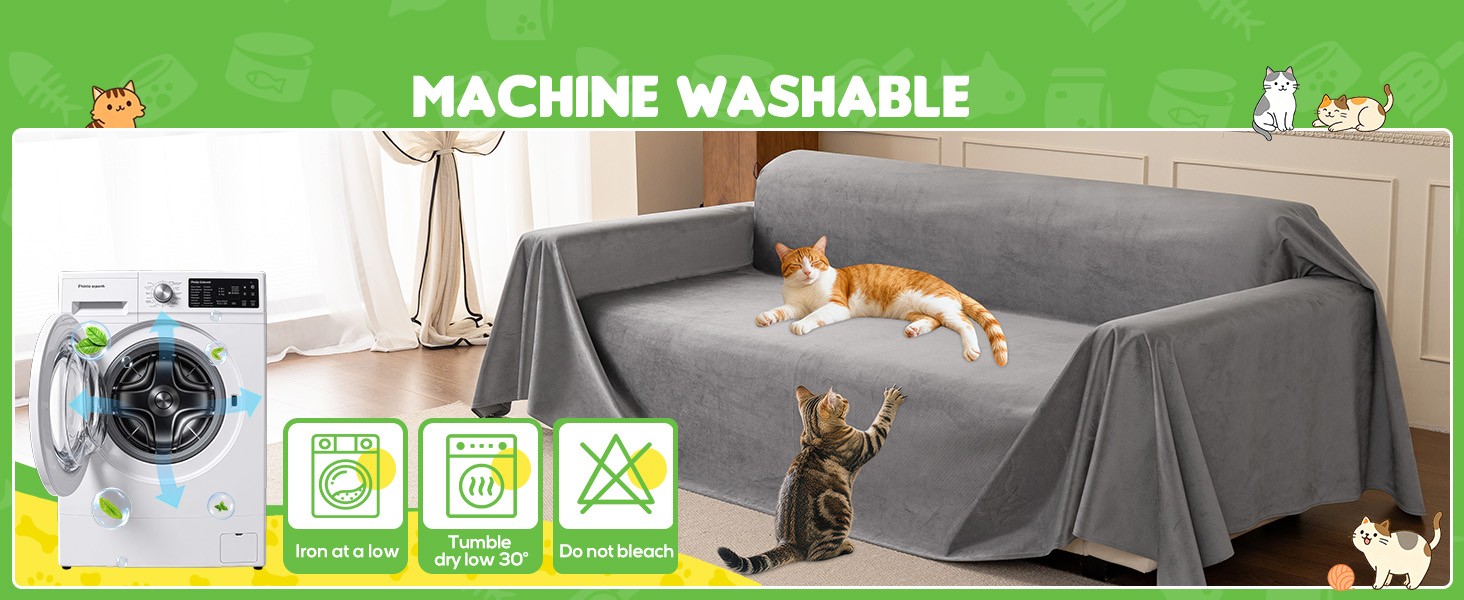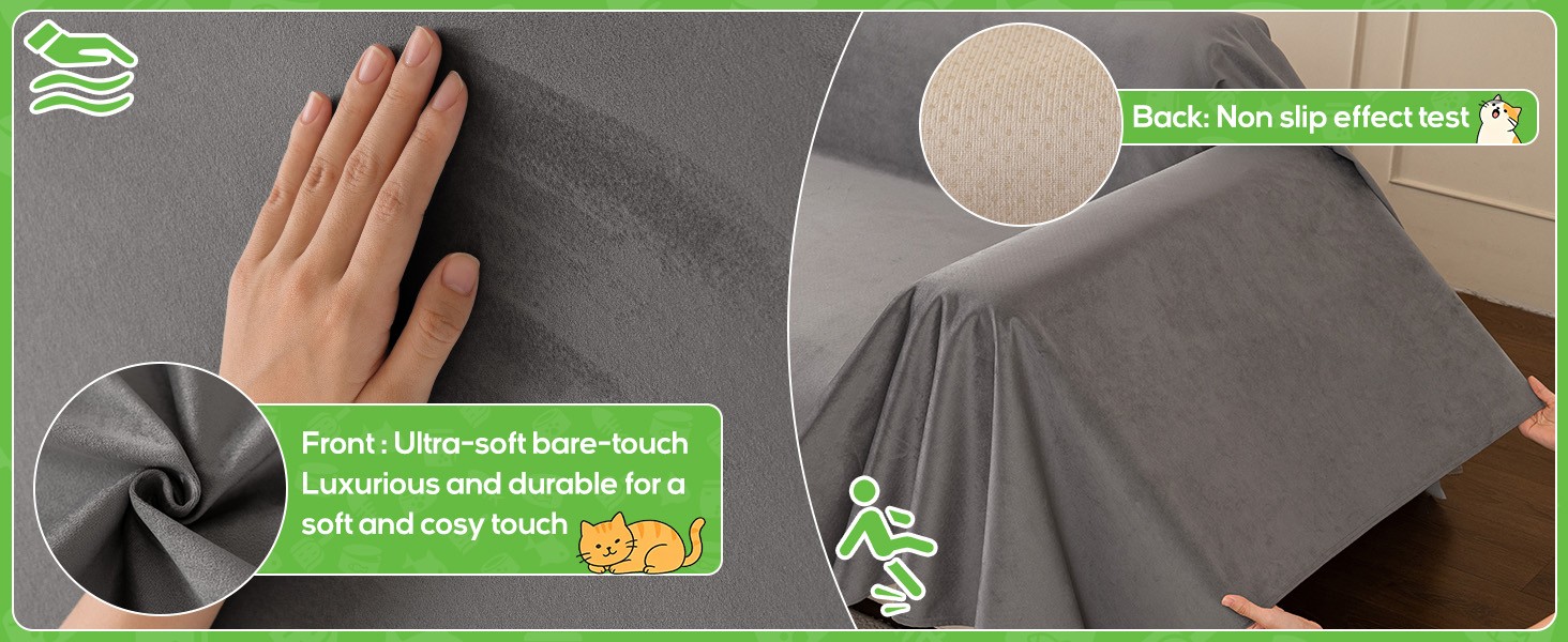 Waterproof & Non-Slip: Spilled coffee, cat water bowl messes, or accidental pet urine—all blocked by the waterproof surface, and cleanup is a breeze with just a wipe! The back of our waterproof couch cover features non-slip dots plus elastic edges, so it stays put even during long sits or energetic cat jumps. Care tip: Machine wash in cold water (around 30°C), tumble dry low—no bleach or ironing needed.