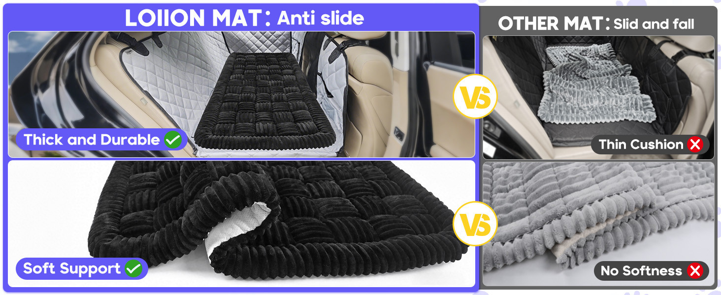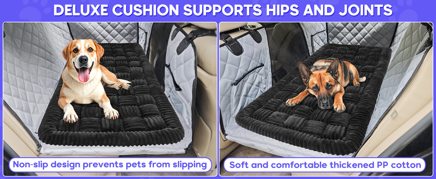 Ultra Soft Comfort:The surface of our back seat dog bed is made from top - grade soft materials, with a delicate and silky touch to reduce joint stress by 58% during 6+ hour trips—ideal for senior dogs or breeds prone to hip dysplasia. It allows your pet to relax instantly and enjoy the journey to the fullest. Whether it's a short drive or a long - distance trip, it provides your pet with the ultimate comfort.