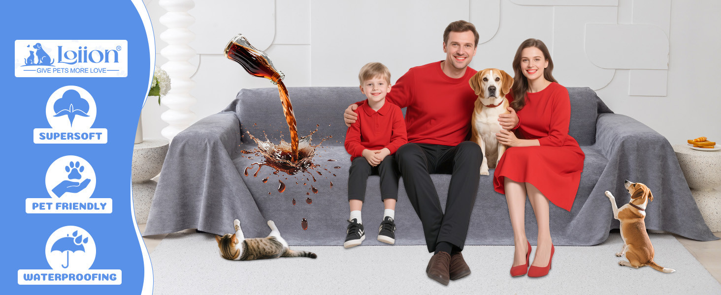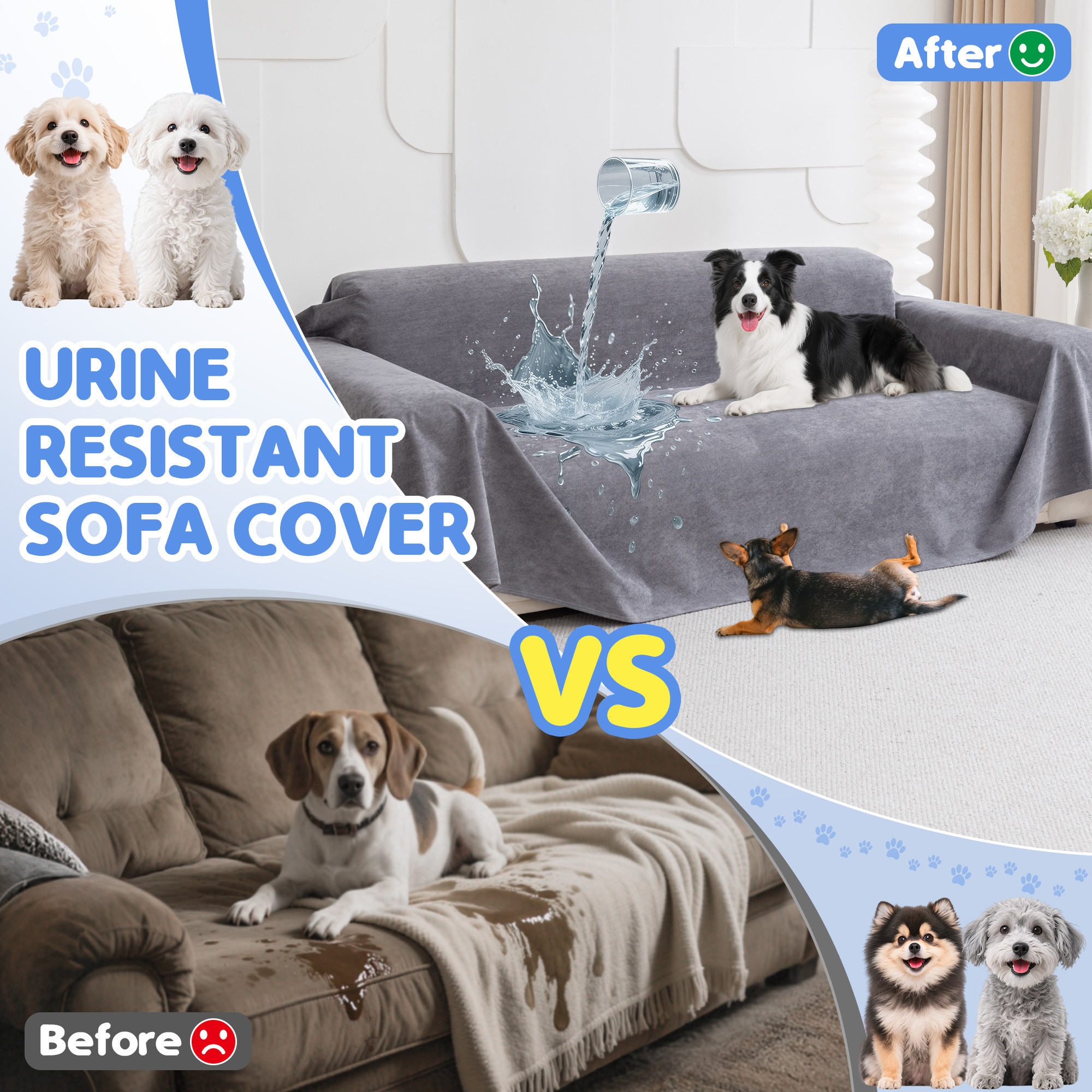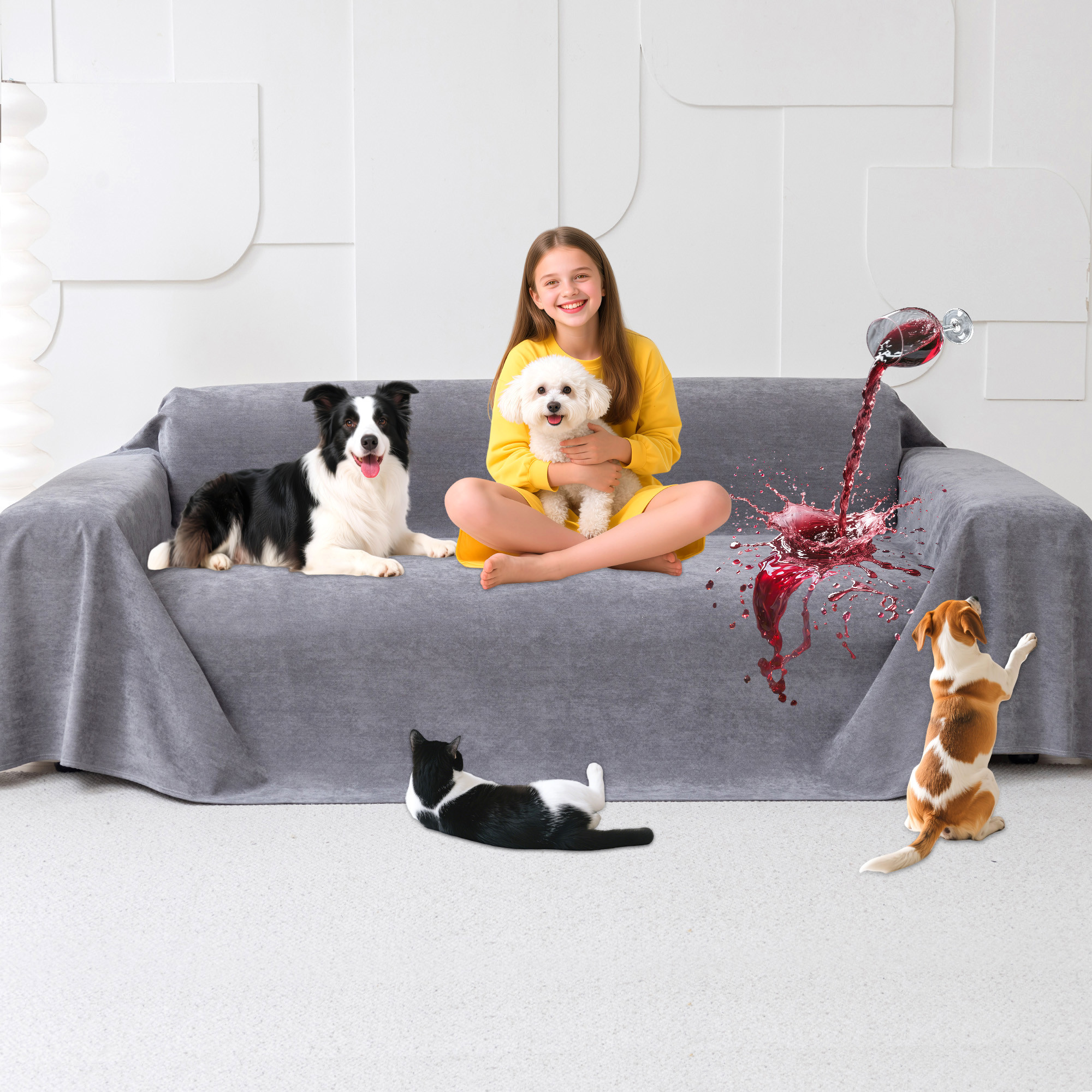 Ultra No-Slip Grip:The non slip sofa cover's silicone grippers on the back cling like Velcro—even when your 50lb Lab races across the couch or kids jump on it. No more constant readjusting like flimsy blankets. Finally, a protector that stays PUT.