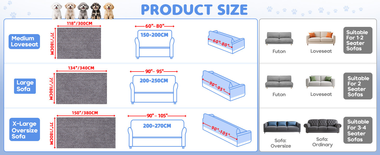 Exceptional Scratch Resistance:Expertly crafted from durable 100% polyester fabric, our anti scratch furniture protector to protect from dog claws is built to withstand dog claws, providing superior protection against scratching, clawing and shedding. Your beloved pet can relax on the sofa without leaving a mark.