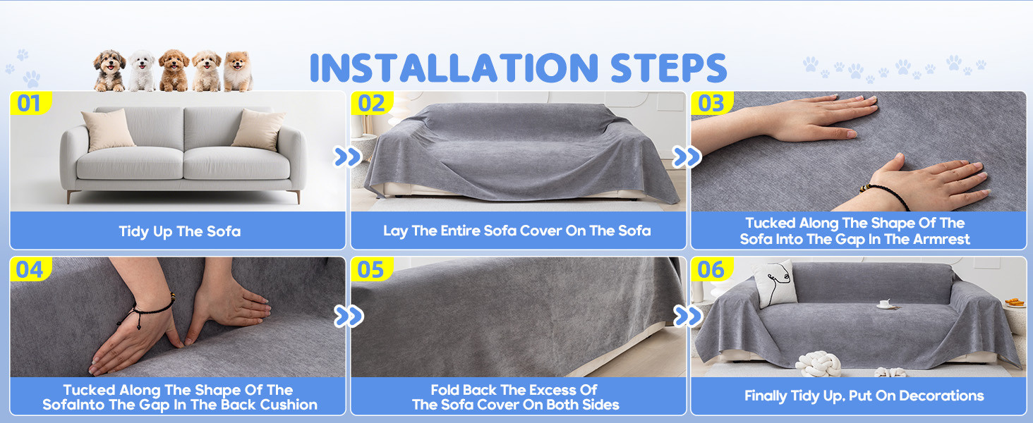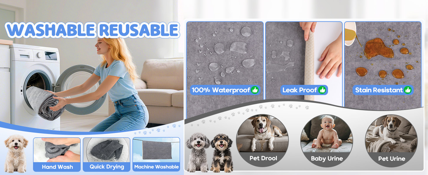 Waterproof and Easy to Maintain: Our couch cover for dogs washable shields your furniture from spills and accidents, ensuring easy clean-up. Simply toss it in the washing machine with cold water (around 30°C) and mild detergent for hassle-free maintenance. Avoid bleach and ironing. Our friendly customer service team is here to help with any questions post-purchase.