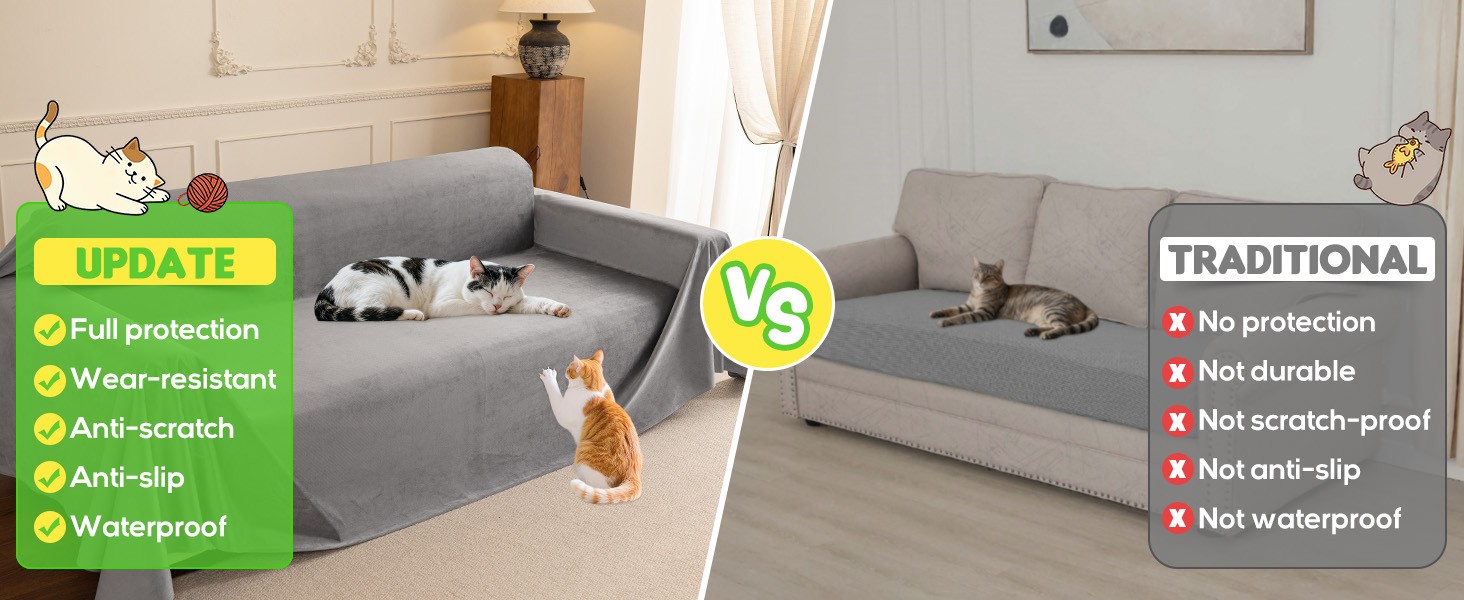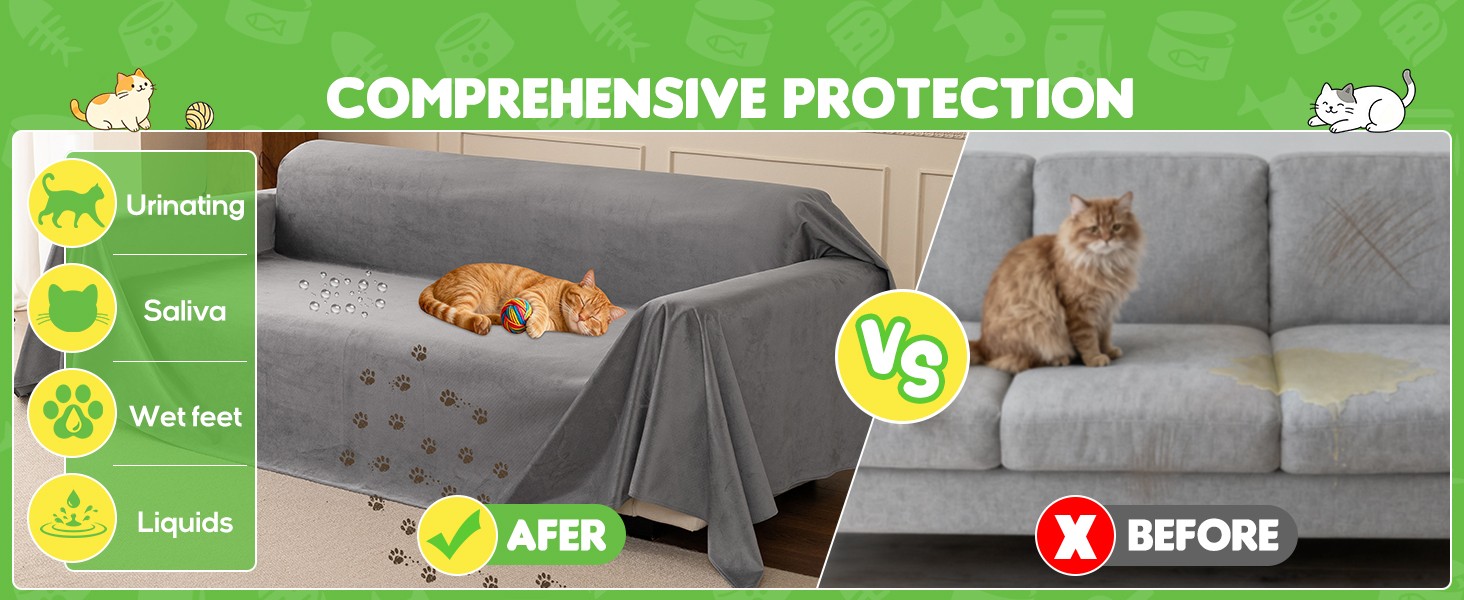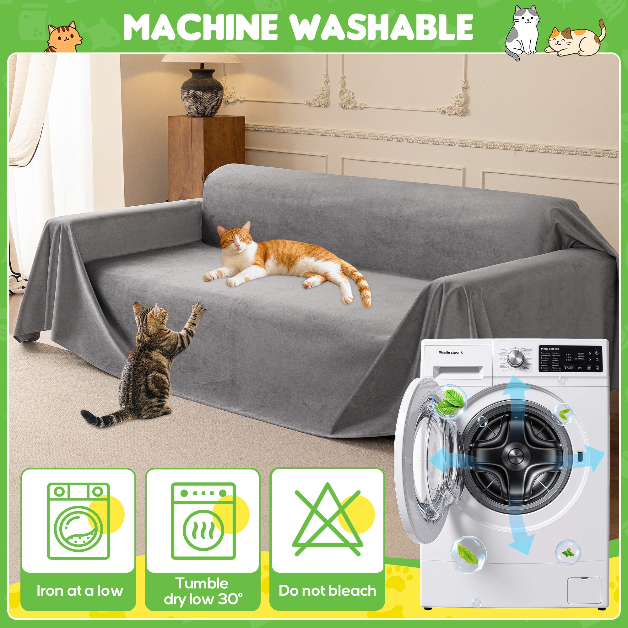 Waterproof & Non-Slip: Spilled coffee, cat water bowl messes, or accidental pet urine—all blocked by the waterproof surface, and cleanup is a breeze with just a wipe! The back of our waterproof couch cover features non-slip dots plus elastic edges, so it stays put even during long sits or energetic cat jumps. Care tip: Machine wash in cold water (around 30°C), tumble dry low—no bleach or ironing needed.