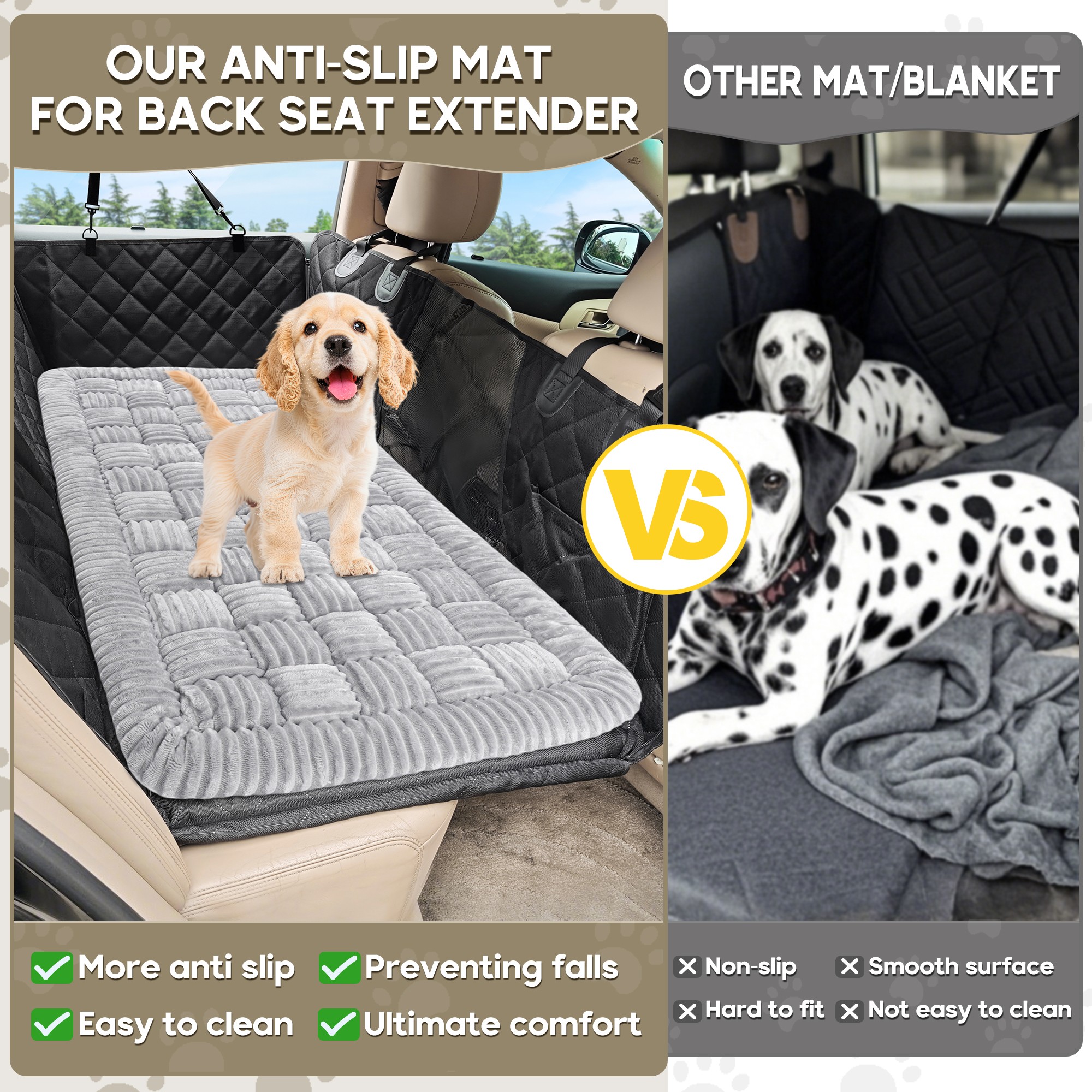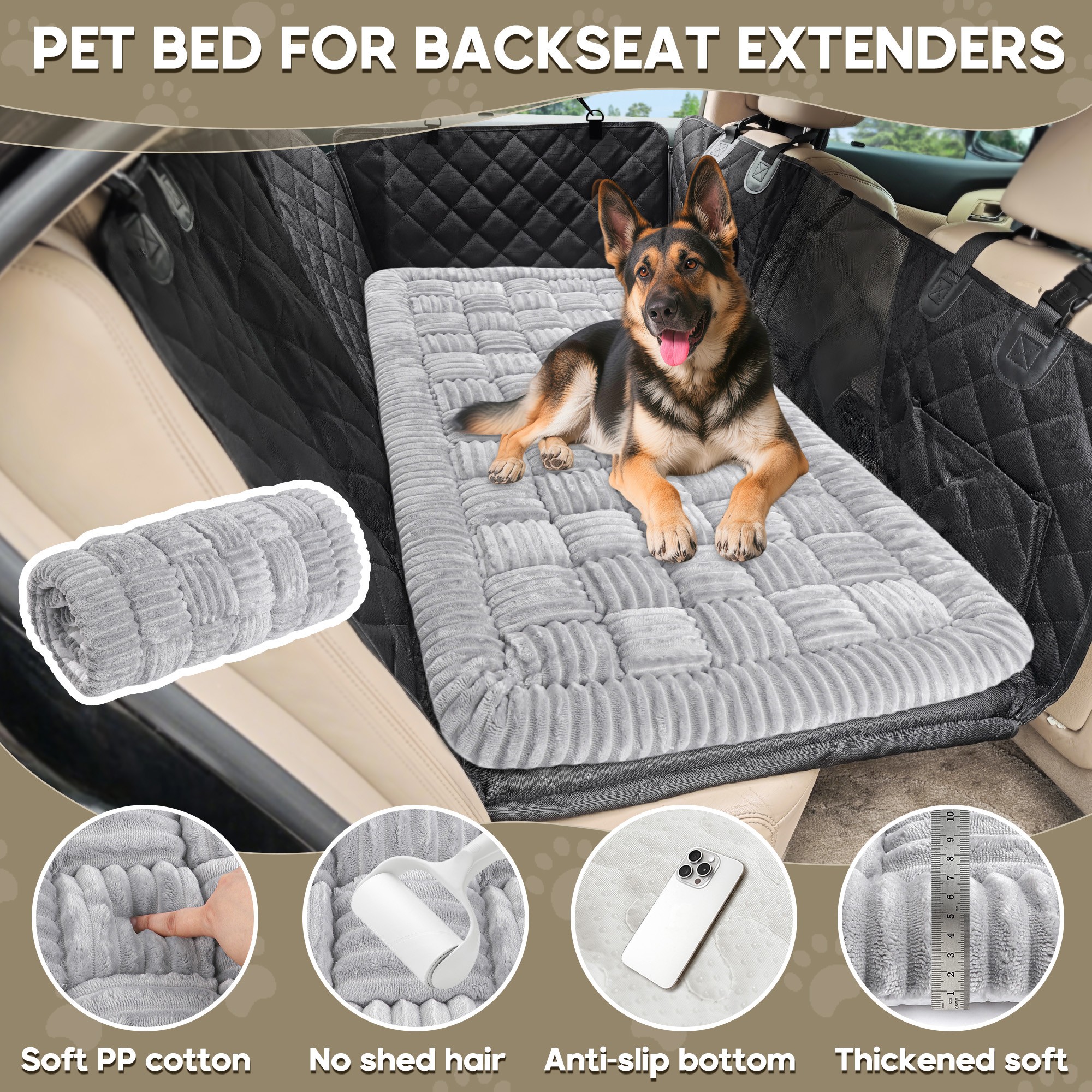 Dog Car Bed Mat, Non-Slip Backseat Extender Pet Blanket, Plaid Dog Bed for SUVs, Sedans & Trucks, Chew-Resistant Travel Pad for Dogs, Easy Clean & Scratch-Proof & Comfort Light Gray