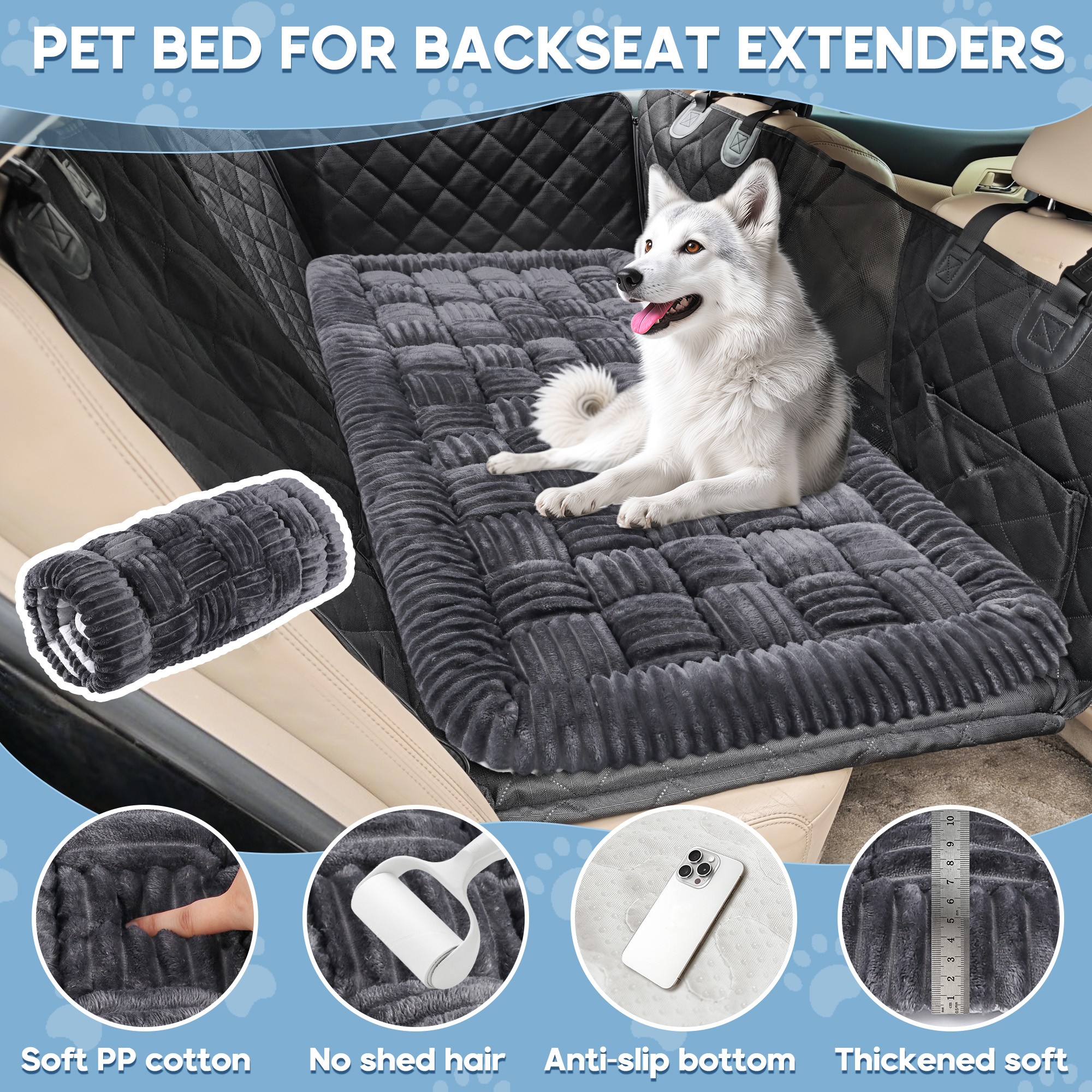 Dog Car Bed Mat, Non-Slip Backseat Extender Pet Blanket, Plaid Dog Bed for SUVs, Sedans & Trucks, Chew-Resistant Travel Pad for Dogs, Easy Clean & Scratch-Proof & Comfort Gray